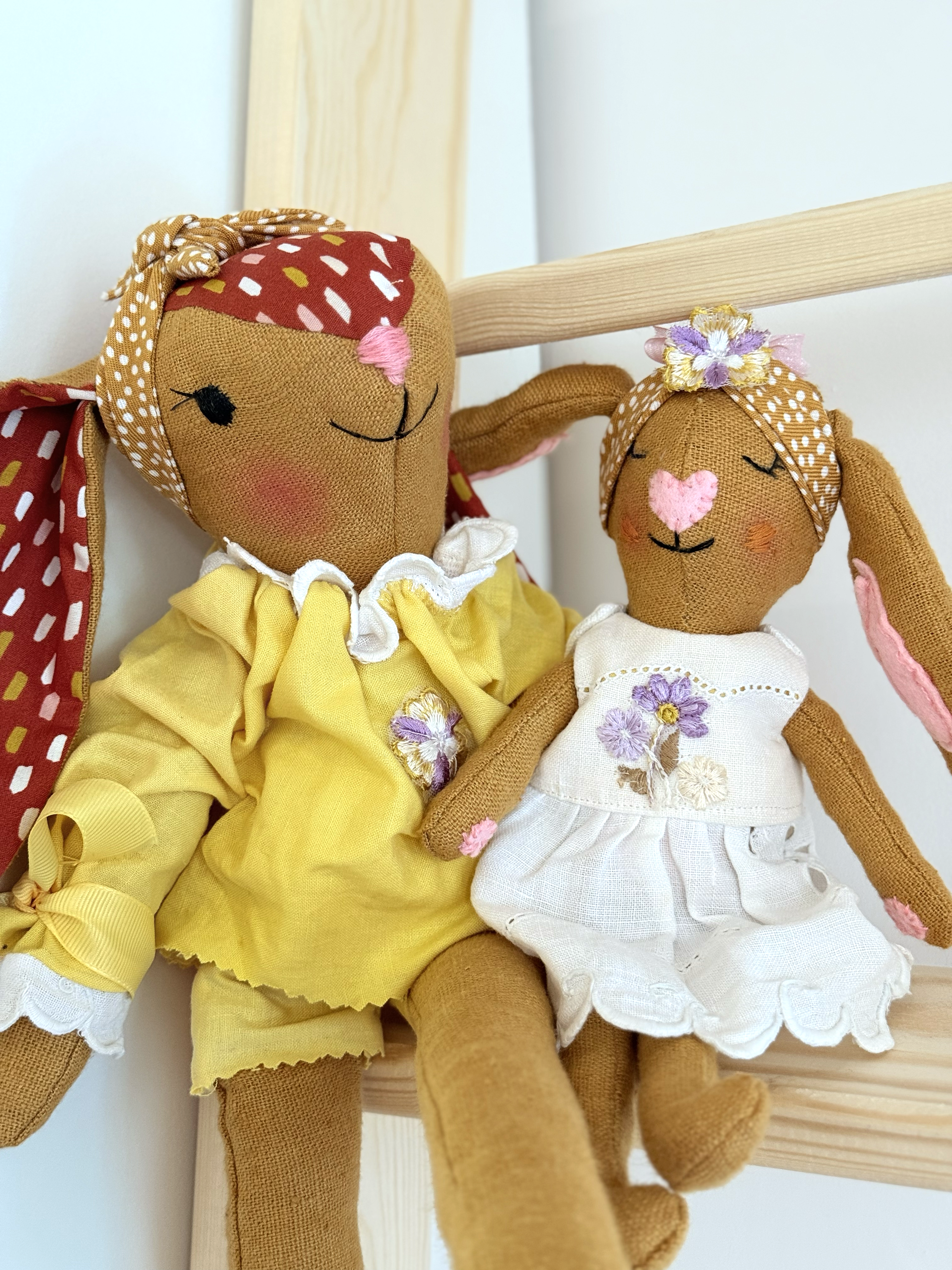 Je transforme chaque visage en poupée les mêmes yeux qui pétillent, la même mèche rebelle, le même sourire ou la même robe à fleurs ou le même pull de Noël.